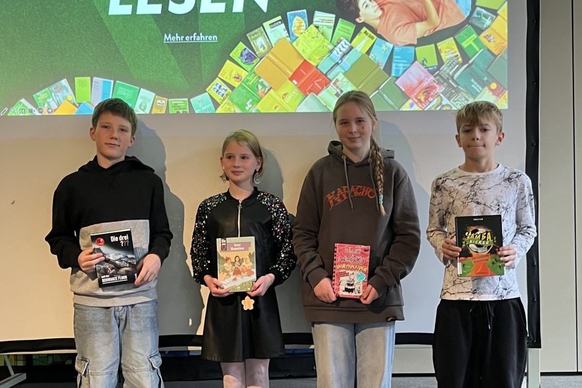 Der Vorlesewettbewerb der MSL wurde von unserem „Lese-Experten“ Herrn Heßdörfer wie gewohnt sehr souverän moderiert und für die musikalische Umrahmung sorgten Katharina (10 M) und Sunjay (9 c) mit wunderschönen Klavierstücken - dafür ein herzliches Dankeschön!! Kommen wir zu unserer Jury: Dabei waren unsere „Chefin“ Fr. Rohrmüller, Frau Karg aus der Schülerbücherei, die Stadtbücherei wurde durch Frau Dobler vertreten, Frau Pletsch von der Buchhandlung Netzer unterstütze ebenfalls die Jury und last but not least unsere Schülersprecherin Erika aus der 10 M und der Gewinner des Vorlesewettbewerbs 2024 Danny. Jede Leserin und jeder Leser hatten jeweils drei Minuten Zeit, aus dem eigenen Buch vorzulesen. Die Jugendlichen hatten sich spannende Bücher ausgesucht: Die drei Fragezeichen, Die Vampirschwestern oder ein Date mit Biss. Alle hatten sich super vorbereitet und das Zuhören war wirklich ein Genuss! Danach gab es einen zweiten Durchgang. Die Teilnehmerinnen und Teilnehmer des Wettbewerbes mussten einen Fremdtext aus dem Buch „Mein Freund Otto, das wilde Leben und ich“ vorlesen – eine größere Herausforderung, die aber alle mit Bravour meisterten. Die Jury vergab Punkte auf die Lesetechnik, die Interpretation und auf die Textstellenauswahl. Den 1. Platz sicherte sich Christina mit erstaunlichen 127 Punkten aus der 6 b. Den 2. Platz belegte Liam mit 106 Punkten aus der 6 a. Auf den 3. Platz kam Robin aus der 6 b mit 93 Punkten und den 4. Platz bekam Nicola aus der 6 a mit 86 Punkten. Alle Teilnehmerinnen und Teilnehmer durften sich am Ende ein Buch der Buchhandlung Netzer aussuchen. Für die Zuschauerinnen und Zuschauer spendierte die Schulleitung einen leckeren Hefe-Nikolaus, den sich alle schmecken ließen. Anschließend wurden noch Fotos mit den Gewinnern gemacht. Insgesamt eine wirklich gelungene Veranstaltung!!