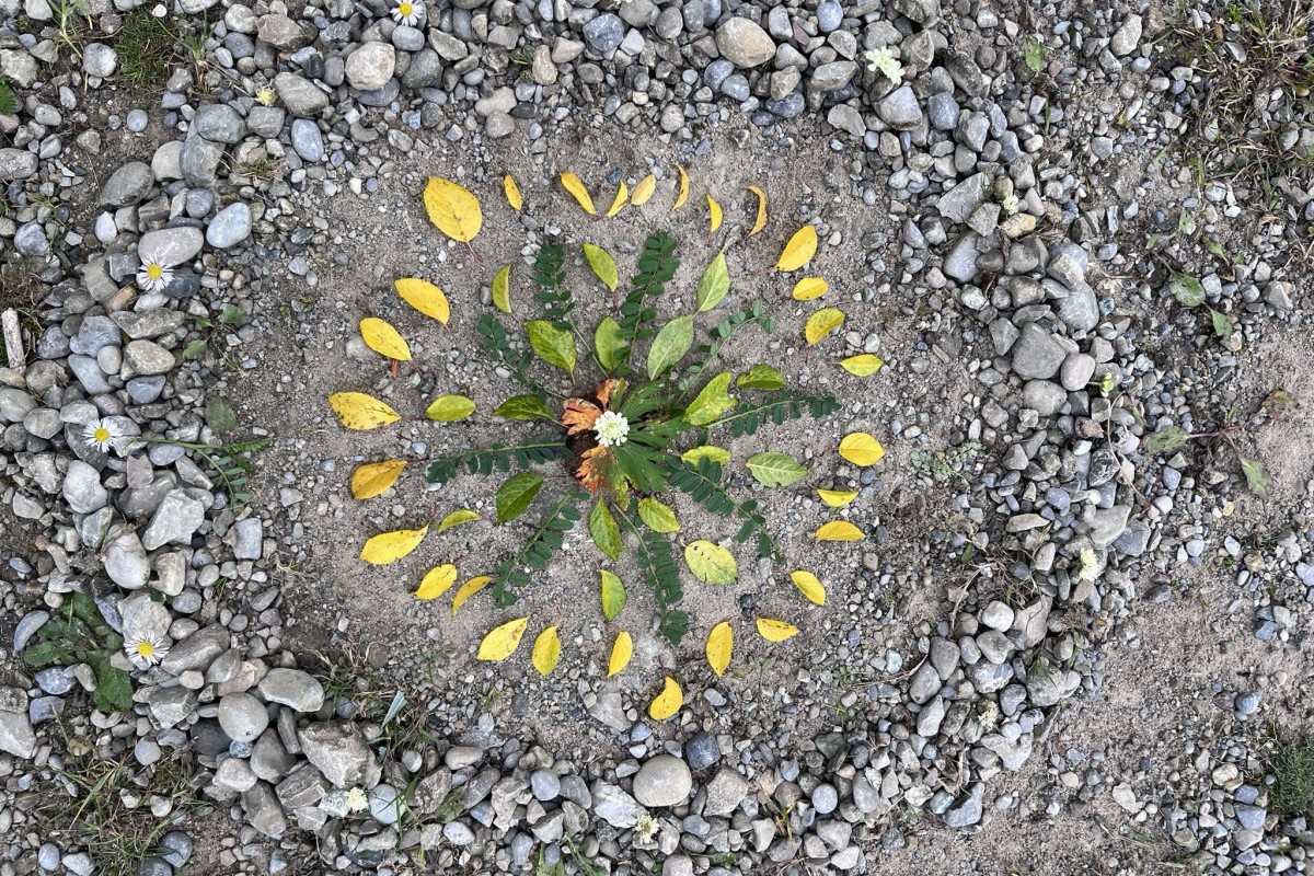 Zunächst sammelten die Schülerinnen und Schüler eine Farbpalette aus natürlichen Herbsttönen – Blätter, Steine, Rindenstücke und vieles mehr.