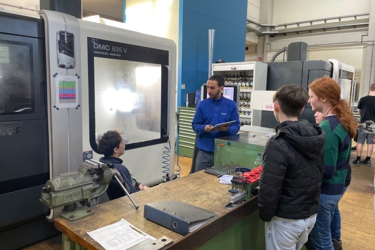 Ein besonderes Highlight war die Möglichkeit, ein eigenes Knobelspiel aus Metall herzustellen. Unter Anleitung der Azubis durften die Jugendlichen selbst sägen und bohren. Am Ende konnten sie das Knobelspiel mit ihren Initialen versehen lassen und stolz mit nach Hause nehmen.