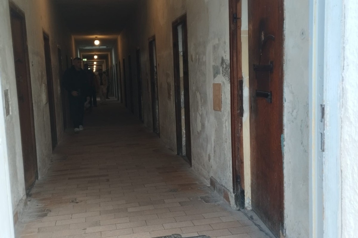 Nachdem wir eine erschütternde Dokumentation über das KZ angesehen hatten, wurde uns eine Führung zugeteilt, die uns über das Gelände führte. Sie erklärte und zeigte uns sehr viele Dinge über die schreckliche Zeit damals. Am Anfang erklärte sie uns den Aufbau des Konzentrationslagers und welche Personen darin inhaftiert wurden. Anschließend gingen wir zu dem Verwaltungsgebäude, in dem die Inhaftierten ihre Namen gegen Nummern austauschen mussten, gereinigt wurden und ihre persönlichen Gegenstände abgeben mussten. Danach wurden wir in das Gefängnis geführt, wo die Inhaftierten bestraft wurden, z. B. mit Einzelhaft in einem engen Raum oder mit Schlägen. Es war sehr beklemmend.