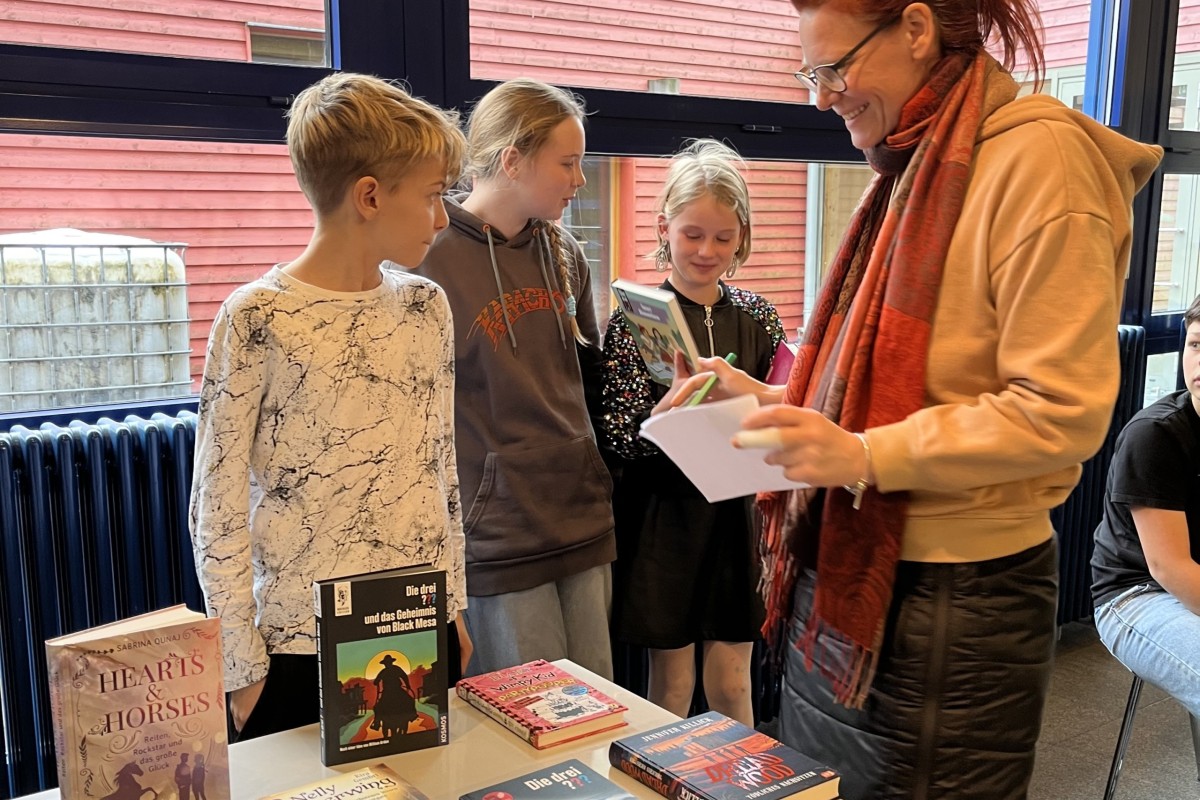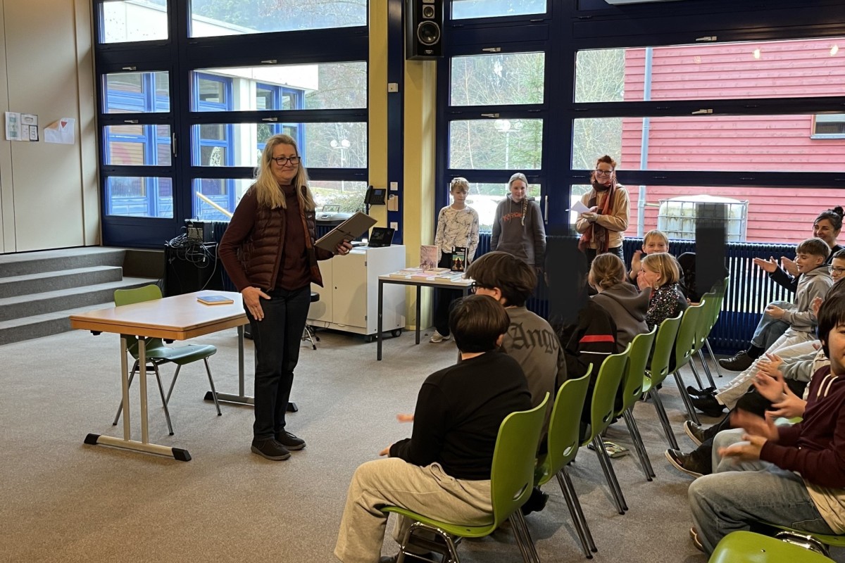 Der Vorlesewettbewerb der MSL wurde von unserem „Lese-Experten“ Herrn Heßdörfer wie gewohnt sehr souverän moderiert und für die musikalische Umrahmung sorgten Katharina (10 M) und Sunjay (9 c) mit wunderschönen Klavierstücken - dafür ein herzliches Dankeschön!! Kommen wir zu unserer Jury: Dabei waren unsere „Chefin“ Fr. Rohrmüller, Frau Karg aus der Schülerbücherei, die Stadtbücherei wurde durch Frau Dobler vertreten, Frau Pletsch von der Buchhandlung Netzer unterstütze ebenfalls die Jury und last but not least unsere Schülersprecherin Erika aus der 10 M und der Gewinner des Vorlesewettbewerbs 2024 Danny. Jede Leserin und jeder Leser hatten jeweils drei Minuten Zeit, aus dem eigenen Buch vorzulesen. Die Jugendlichen hatten sich spannende Bücher ausgesucht: Die drei Fragezeichen, Die Vampirschwestern oder ein Date mit Biss. Alle hatten sich super vorbereitet und das Zuhören war wirklich ein Genuss! Danach gab es einen zweiten Durchgang. Die Teilnehmerinnen und Teilnehmer des Wettbewerbes mussten einen Fremdtext aus dem Buch „Mein Freund Otto, das wilde Leben und ich“ vorlesen – eine größere Herausforderung, die aber alle mit Bravour meisterten. Die Jury vergab Punkte auf die Lesetechnik, die Interpretation und auf die Textstellenauswahl. Den 1. Platz sicherte sich Christina mit erstaunlichen 127 Punkten aus der 6 b. Den 2. Platz belegte Liam mit 106 Punkten aus der 6 a. Auf den 3. Platz kam Robin aus der 6 b mit 93 Punkten und den 4. Platz bekam Nicola aus der 6 a mit 86 Punkten. Alle Teilnehmerinnen und Teilnehmer durften sich am Ende ein Buch der Buchhandlung Netzer aussuchen. Für die Zuschauerinnen und Zuschauer spendierte die Schulleitung einen leckeren Hefe-Nikolaus, den sich alle schmecken ließen. Anschließend wurden noch Fotos mit den Gewinnern gemacht. Insgesamt eine wirklich gelungene Veranstaltung!!