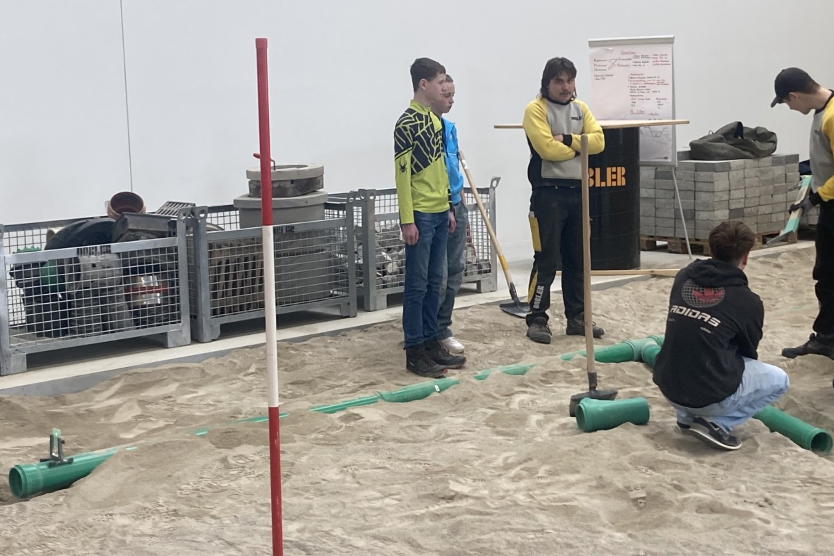 Vor Ort wurden die Jugendlichen zu einer Betriebsbesichtigung eingeladen und erhielten im Anschluss die Möglichkeit, verschiedene Ausbildungsberufe praxisnah zu erproben. An insgesamt sechs Stationen konnten die Schülerinnen und Schüler unter Anleitung unter anderem Einblicke in Tätigkeiten im Straßenbau und im Maurerhandwerk gewinnen, praktische Aufgaben ausprobieren und beispielsweise auch Arbeiten wie das Verlegen von Rohren kennenlernen (Hoch-und Tiefbau). Ergänzend dazu erhielten wir eine Rundfahrt sowie eine Besichtigung der Firmenanlagen, wodurch die betrieblichen Abläufe und das Arbeitsumfeld anschaulich vermittelt wurden.