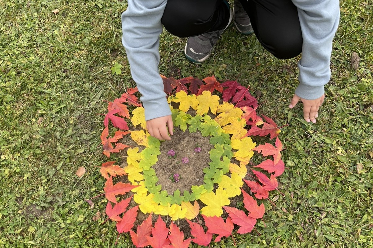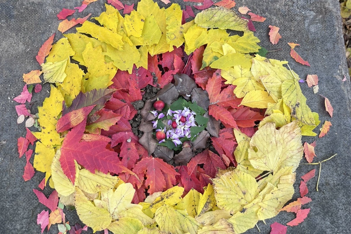 Anschließend durfte jedes Kind ein eigenes Mandala aus Naturmaterialien gestalten, das am Ende fotografisch festgehalten wurde. Die Kinder arbeiteten dabei sehr konzentriert und fast meditativ und waren anschließend sichtbar stolz auf ihre beeindruckenden Ergebnisse.