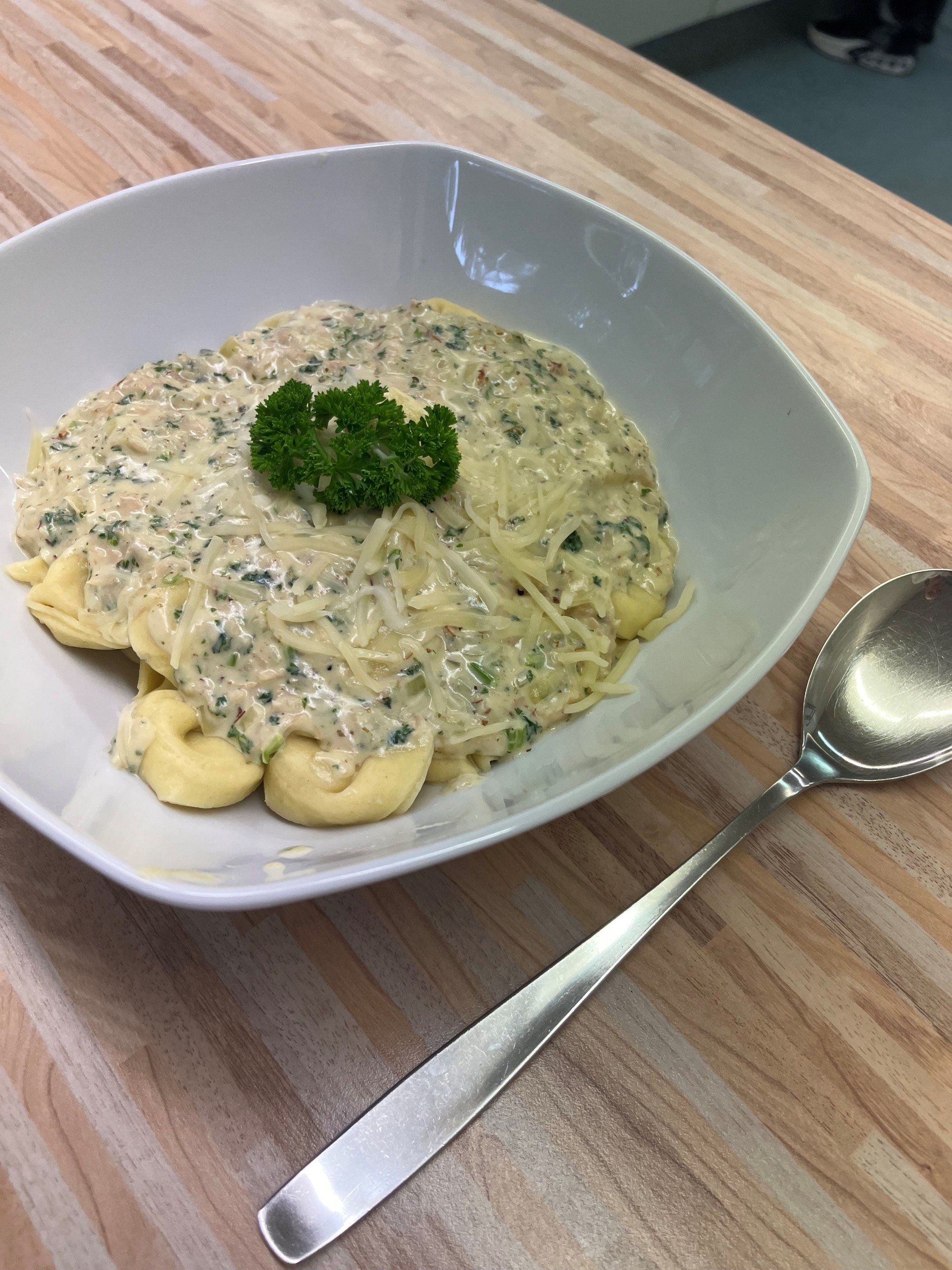 Im ES-Unterricht erkundete die Klasse 7b einen Supermarkt, um Verkaufsstrategien wie Produktplatzierung, Sonderangebote und Marketingtricks zu analysieren. Anschließend kauften die Schüler gezielt Zutaten für ihr Kochprojekt ein: Tortellini mit Schinken-Sahne-Soße.
